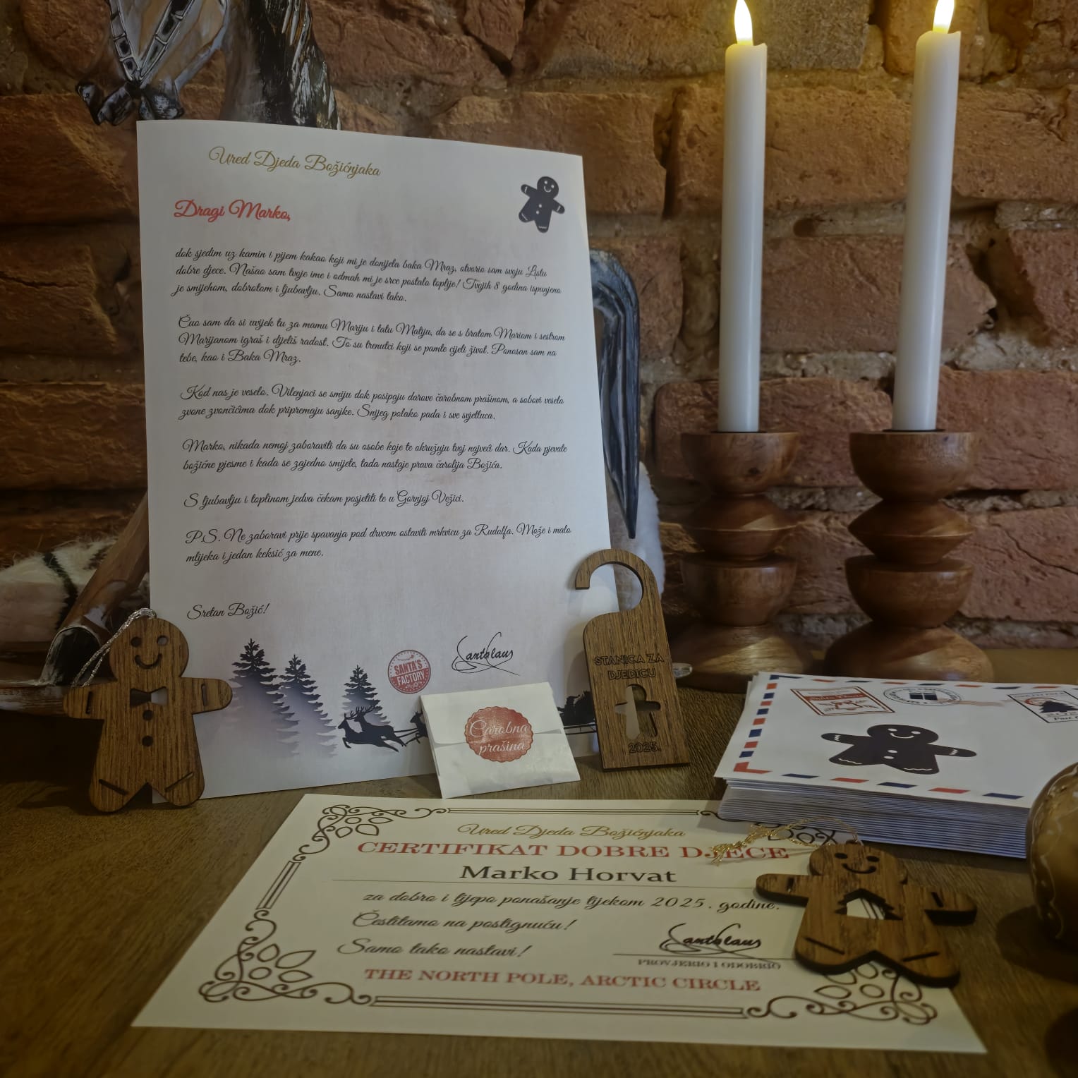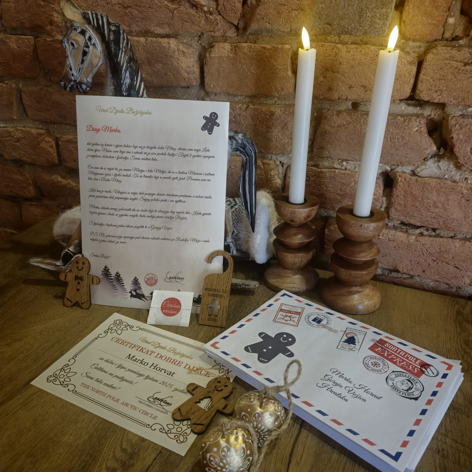 Pismo i sadržaj pisma, te dodatci iznenađenja su u duhu Božića. Djed Božićnjak prema svom običaju piše pisma i krije sadržaj kako bi i sami roditelji bili iznenađeni. Neka Djedica piše vašoj djeci, unučadi, nećacima i nećakinjama, te drugoj djeci koja su cijele godine bila dobra (pisali smo i osobama starijim od 50 godina). Tako da pismo neće samo iznenaditi dijete već i Vas!